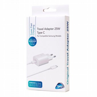 מטען קיר סמסונג מקורי מהיר 25W עם כבל טייפ-סי (לבן) – סאני