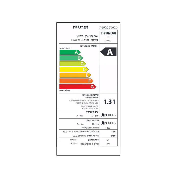תוף בעל קיבולת כביסה של 10 ק"ג